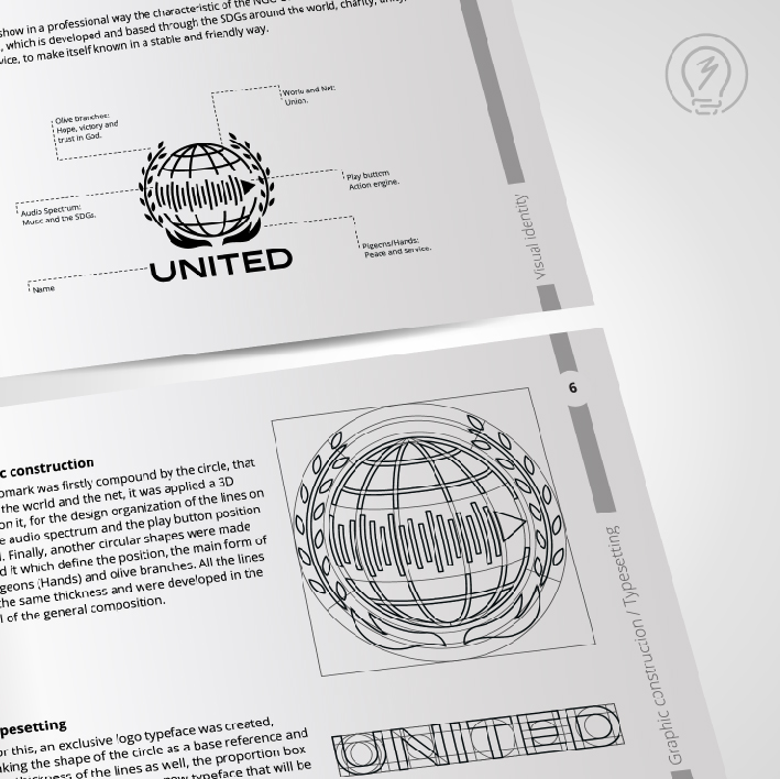 Esta quiere poder mostrar de manera profesional las características de la ONG UNITED, creando así una imagen con un mensaje claro a través de su imagen, la cual se desarrolla en la DSG al rededor del mundo, la caridad, la unión, la música y el servicio, poder darse a conocer de manera estable y amigable. A continuación se describirá con más profundidad cada una de las características de esta identidad visual.